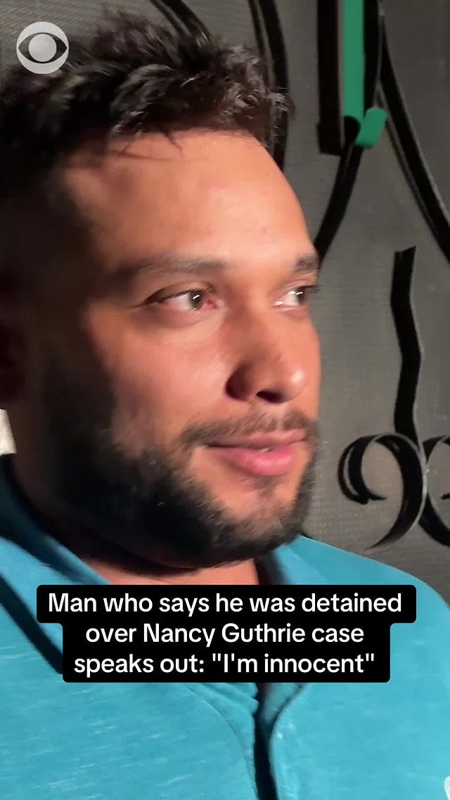 Rio Rico, Arizona — The man who was briefly detained as a person of interest in the kidnapping of Nancy Guthrie is speaking out, telling CBS News and other media outlets that he has no idea why authorities targeted him and maintains he had nothing to do with the 84-year-old’s disappearance.